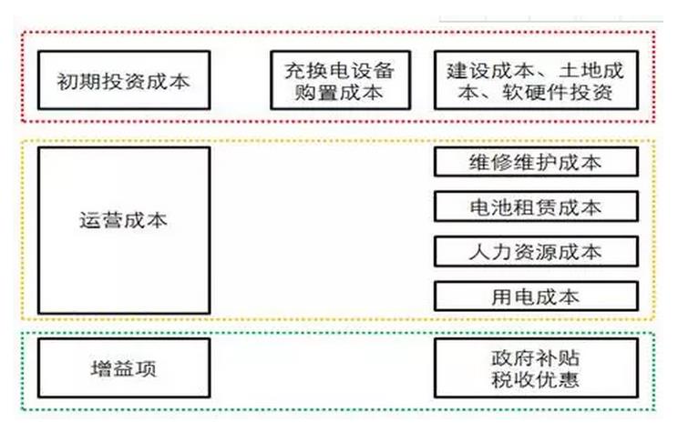 比如仅场站建设问题就要考虑换电站建设用地、电力接入、换电站建设要求、政府规划等因素,还要考虑换电站建成后的社会示范效应及运营收支情况等。换电站前期主要投资和运营成本如下: