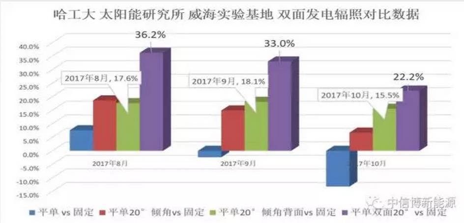 会议对话讨论中,周总分享了中信博在山东威海实验基地数据——双面组件结合平单轴跟踪系统的发电辐照对比。通过数据比对明显看出,双面组件结合平单轴跟踪系统相对于普通固定支架系统年平均可提升发电辐照量在20%以上。