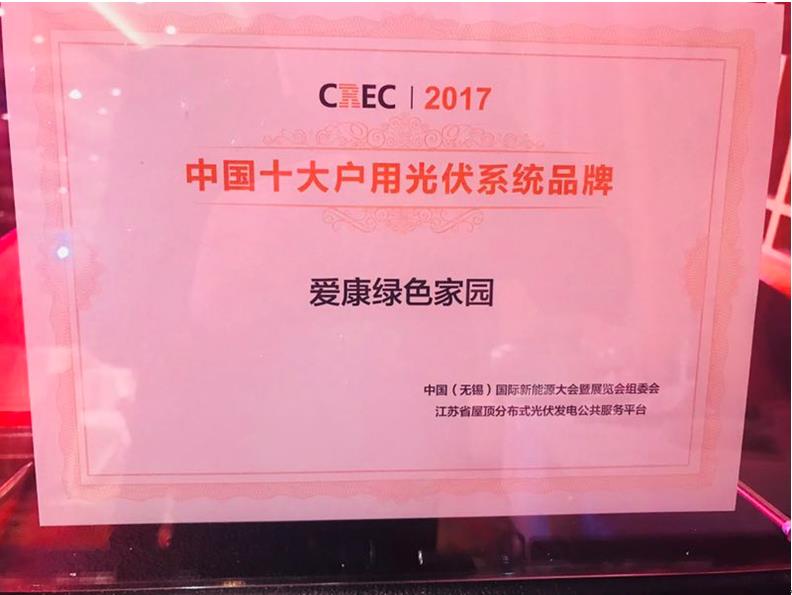三日荣膺两冠爱康绿色家园荣获CREC2017中国十大户用光伏品牌
