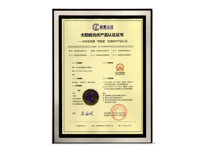 11月3日,上能电气集散式逆变器通过鉴衡认证中心首批光伏”领跑者”先进技术产品认证,荣获太阳能光伏产品认证证书,标志着公司集散式逆变方案全面满足光伏领跑者先进技术要求,达到行业一流水平。
