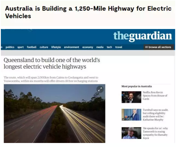 澳洲将建立一条目前世界上最长的可以为电动汽车提供无线充电的“电子道路”