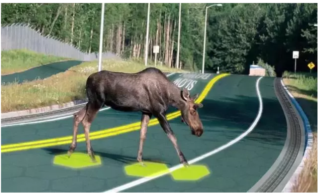 但这还远远不够,Solar Roadway 可以提供路面指示灯系统。。