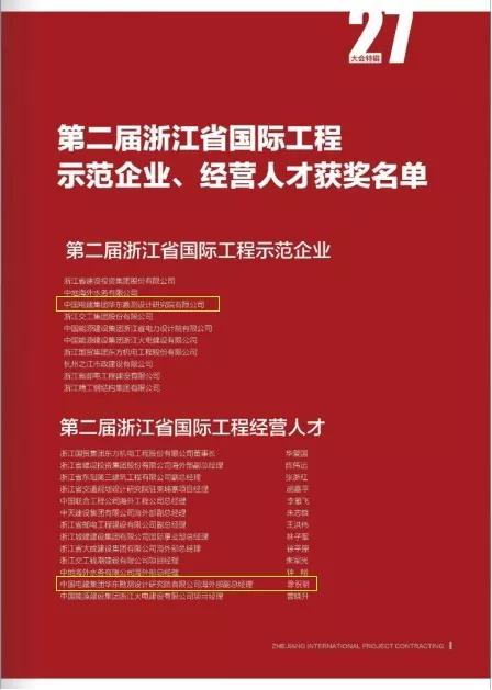 此次浙江省国际工程示范企业、经营人才评选活动,共评出了10个先进企业和13名先进个人。华东院作为浙江省对外工程承包建设的先行者,将继续发挥先进示范效应,进一步拓展“走出去”的国际视野,提升在国际市场的竞争力和品牌形象。