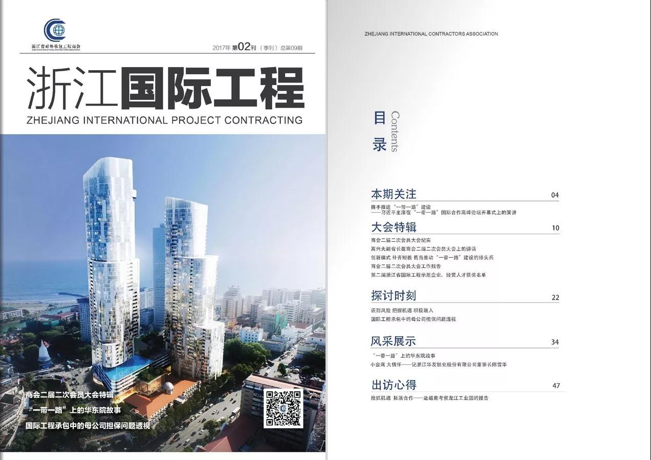 《浙江国际工程》杂志由浙江省商务厅主管,浙江省对外承包工程商会主办,在浙江省行业内具有一定代表性的刊物。以宣传浙江国际工程相关方针政策,聚焦前沿信息、传播先进理念、探讨实用经验、展示企业风采为主要内容,为加快企业“走出去”步伐提供服务,同时为企业提供学习与信息交流园地。