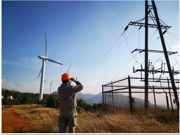 图为云南公司杨梅山风电场职工开展杆塔巡视