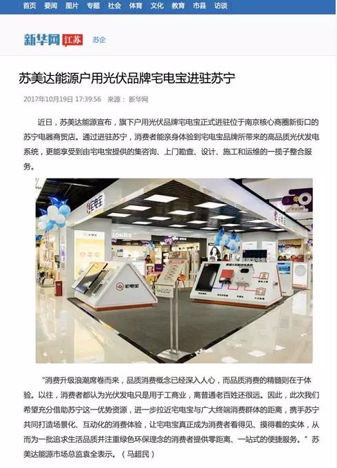 苏美达能源户用光伏品牌宅电宝进驻苏宁