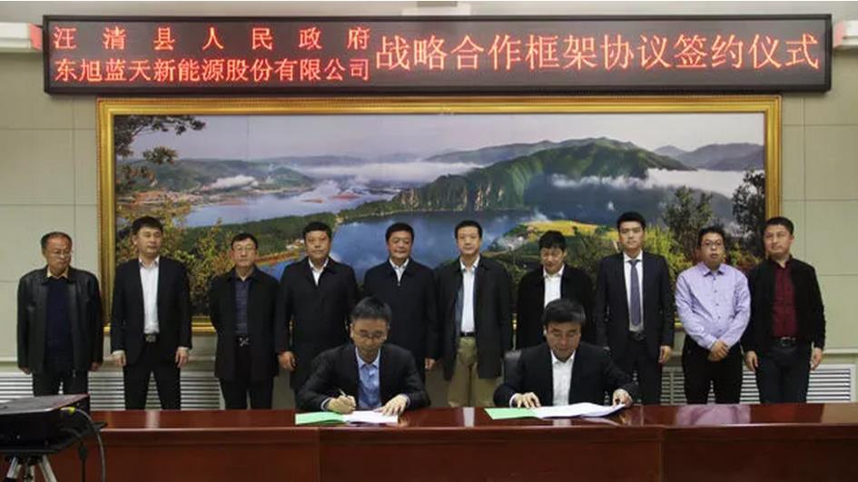 10月19日,汪清县政府与东旭蓝天签订战略合作框架协议。双方携手,充分发挥各自的优势,将在新能源项目、脱贫攻坚示范区、城市环保等项目领域展开全面、深入的战略合作。