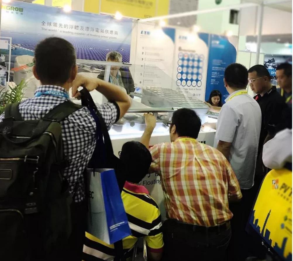 10月18-20日,台湾地区规模最大的国际太阳光电展览会在台北举行。阳光电源携水面型漂浮电站定制化解决方案和灰晶第三代浮体及配件精彩亮相。其中,刚刚荣获“2017中国「光伏+」浮体产品金奖”的第三代浮体引起众多参展商的关注。