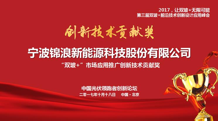 10月18号,第三届2017 “双玻+前沿技术”创新设计应用峰会于临空皇冠假日酒店顺利召开!会议同期举办2017年度“双玻+前沿技术”创新贡献奖,以表彰近年来对双玻组件的技术和应用创新有突出贡献和市场贡献的解决方案。锦浪科技荣膺2017年度“双玻+”市场应用推广创新贡献奖。这是对锦浪科技多年坚持在逆变器生产研发中坚持打造优质产品的认可,也是对锦浪科技品牌的肯定。