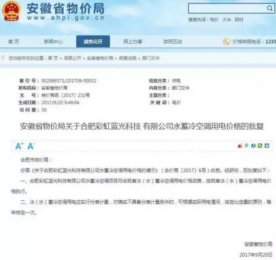 近日,由林洋能源重点打造的合肥彩虹蓝光智慧能源项目,其中水蓄冷部分获得了安徽省物价局关于实施水蓄冷用电价格的优惠政策!这是林洋能源在安徽省用户侧智慧能效服务领域的又一示范项目,也是安徽省首次在大工业企业执行水蓄冷电价,将为企业降低用电成本26%。
