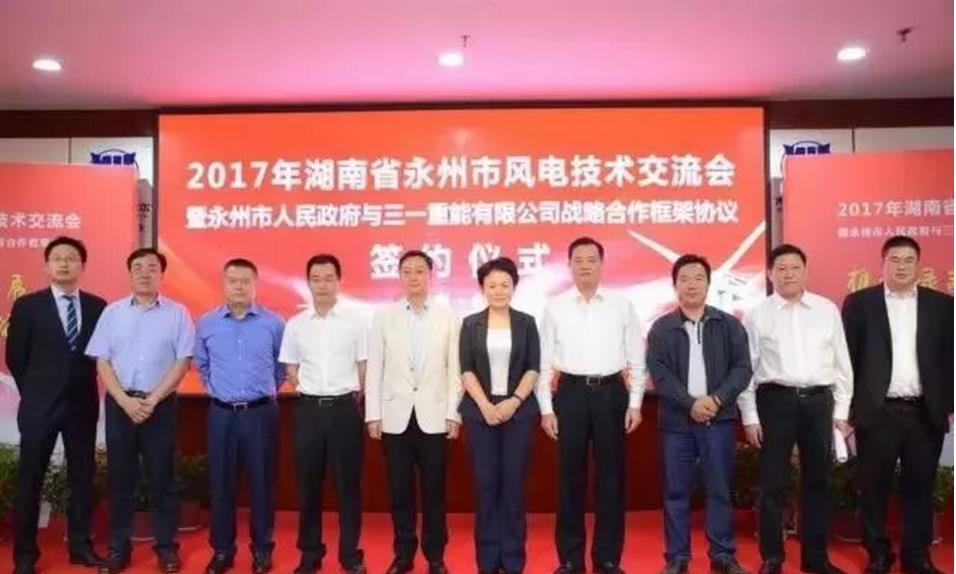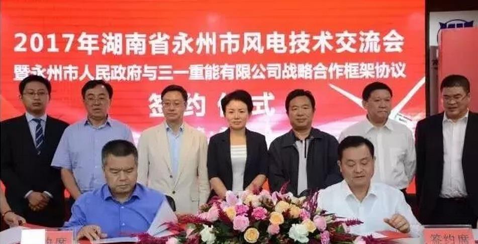 10月11日上午,三一重能与永州市人民政府签订了战略合作框架协议,双方将在风电开发、风电项目投资和装备制造等方面展开深度合作。签约仪式前,还召开了永州市风电技术交流会,交流风电新技术,对接三一重能,共商永州风电产业发展大计。