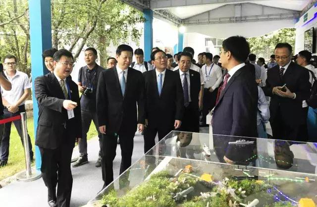 专题宣介活动现场,中天科技展示了海底观测网系统解决方案,吸引了众多嘉宾的驻足交流。李强邀请中联部部长宋涛等共同参观了活动现场的中天科技展位,对海底观测网系统做更深入的了解。