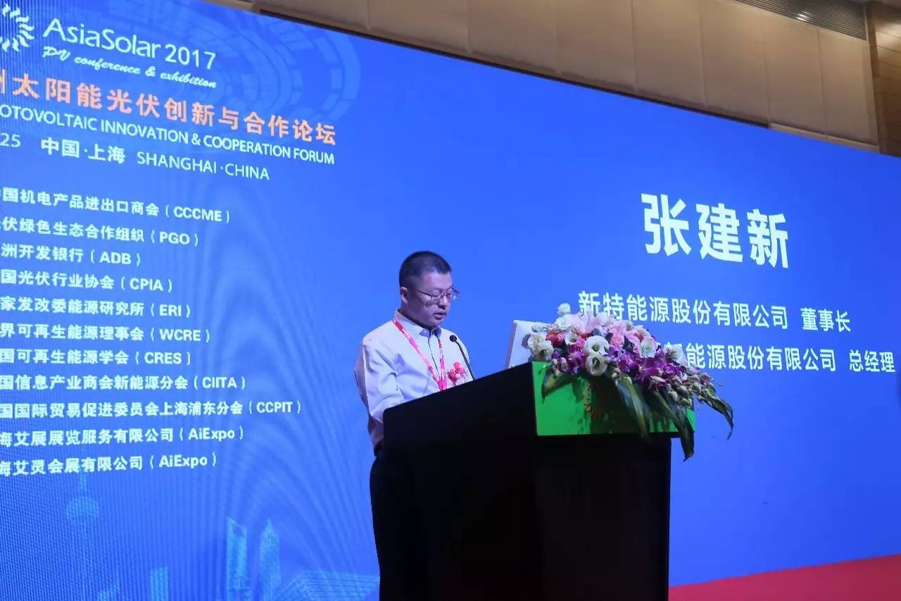 AsiaSolar(第十二届)亚洲光伏论坛顺利召开,作为亚洲高端的光伏论坛,此次以创新与合作为主题,吸引了全球近1000名业内人士参会,2017亚洲光伏创新杰出贡献奖获得者张建新围绕创新与合作在论坛开幕式致辞。