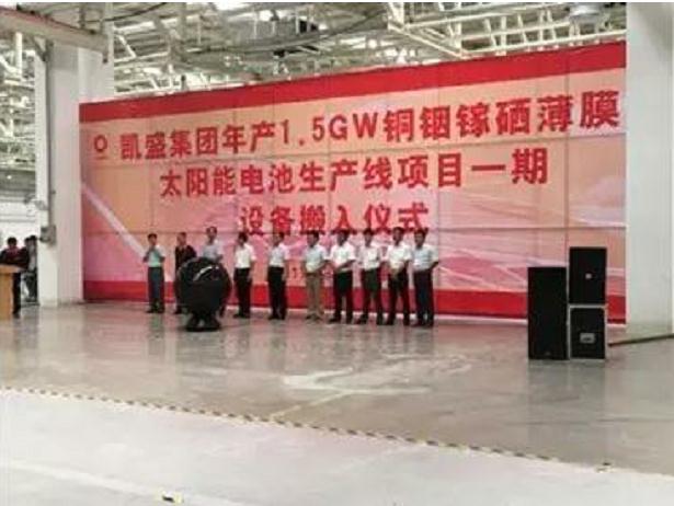 凯盛光伏年产1.5GW铜箔镓硒太阳能薄膜生产线项目,作为安徽省、蚌埠市的重点项目工程之一,以引进、消化、吸收、再创新的模式,率先在国内推进新一代薄膜太阳电池大规模国产化。随着一期设备搬入,项目将建成具有德国工业上4.0先进设备的安装,在国庆节前完成整线调试,在今年年底前产出合格的产品,并开始量产。项目的实施,将全线打通中国薄膜歹阳能电池产业链,全面打造中国薄膜太阳能产业升级版,打破目前太阳能电池的生产严重依赖多晶硅的局面,持续推进蚌埠市千亿元硅基新材料产业向世界高端迈进。