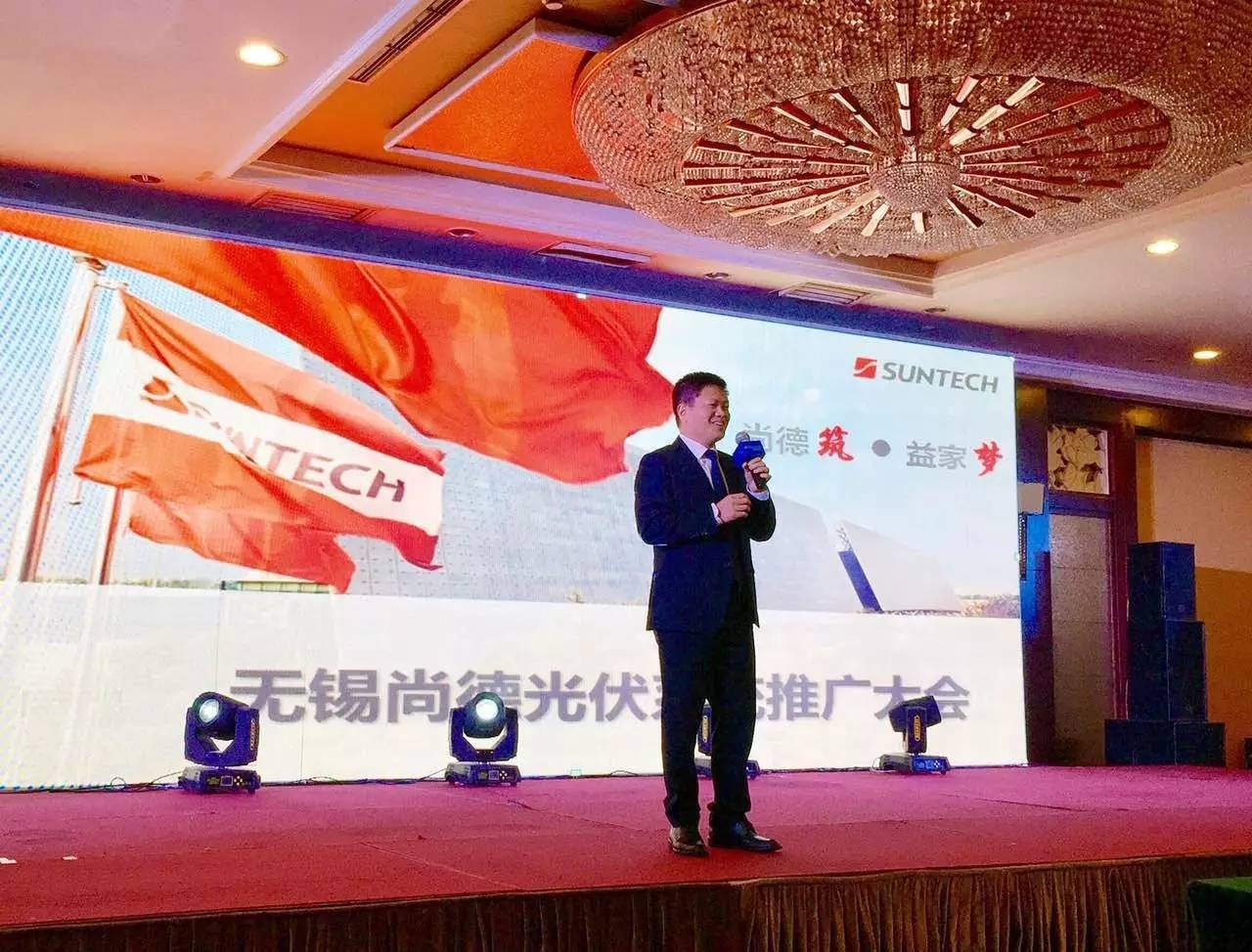 活动最后,何总做了总结讲话,他非常感谢东北三省热情的合作伙伴前来参加此次活动,无锡尚德拥有17年的发展历史,公司始终致力于产品质量、技术、成本及创新能力的发展,是中国光伏产业的开拓者,为整个光伏行业培养和输送了大量的人才。2016年9月,无锡尚德推出“尚德·益家”子品牌,得益于日本分布式市场23年的运维经验,“尚德·益家”正式开启国内分布式业务的新版图。经过一年的积淀,现有授权分销商350家,应对东北分布式蓬勃发展的浪潮,我们将携手合作伙伴一起将“尚德·益家”打造为光伏行业分布式顶级品牌,打通融资平台,结合综合能源解决方案及智能运维管理,齐心协力,共谋发展,做有情怀、有追求的光伏从业者,将蓝天白云、青山绿水带进东北人民的千家万户!