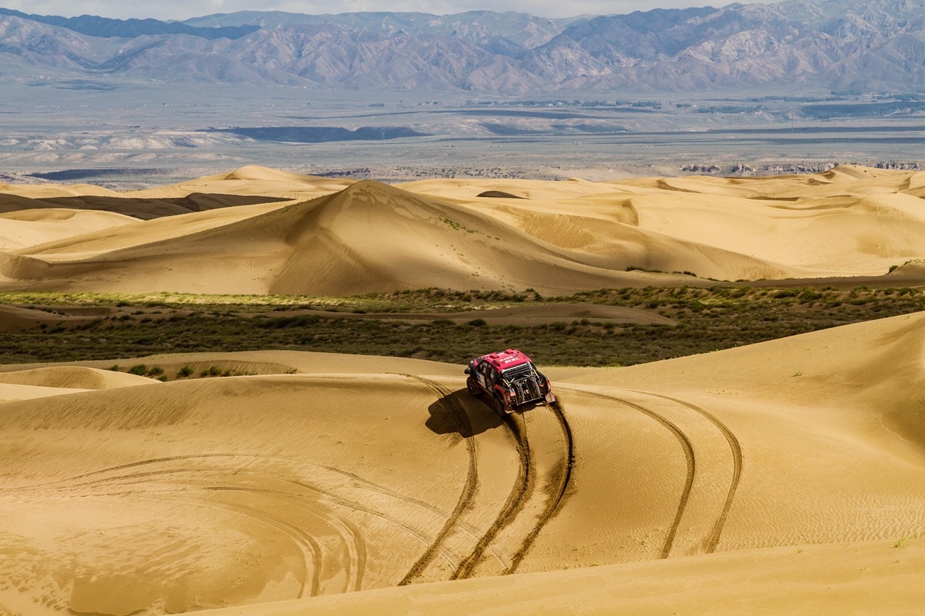 “大美青海·圣洁海南”,在2017中国青海湖高原越野精英赛上,百余名专业赛车选手和爱好者在沙漠中上演速度与激情。
