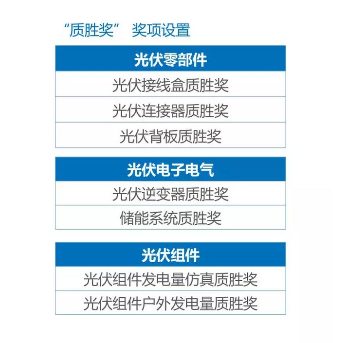作为每年光伏盛典的重头戏,“质胜中国优胜奖”评选,以测试为依据,以数据为准绳,因权威、专业和公正而备受业界推崇。据悉,2018“质胜中国优胜奖”评选将紧跟光伏产业转型升级的步伐,以规范产品质量、树立质量标杆为宗旨,分设“光伏零部件”、“光伏电子电气”和“光伏组件”三大组别,进行全面客观的测试评选,现已接受广大光伏企业报名。
