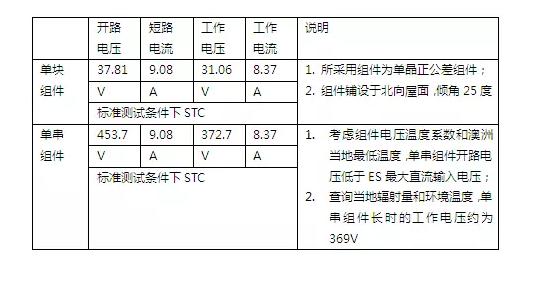 此次储能项目采用24块单晶260W的光伏组件,每串12块,共分两串接入ES储能机,信息如下: