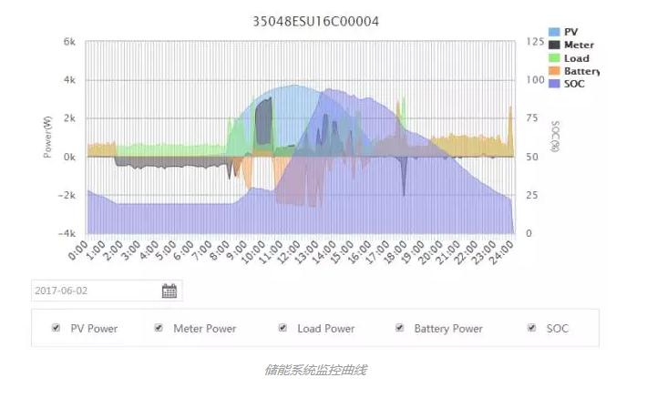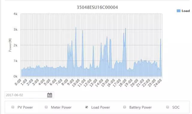 此次电站是在2017年5月份安装,正值南半球的秋冬季节,通过固德威监控网站可以获得电站运行的全部有效信息,以其中某一天为例: