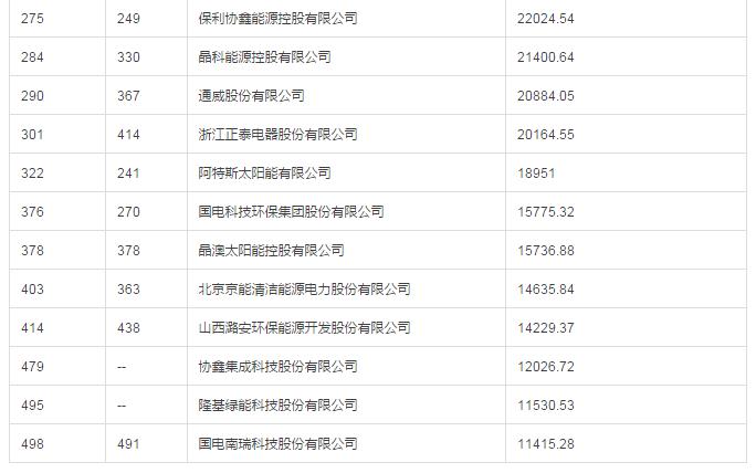 光伏行业方面,除了中电建、中能建、华电、大唐等大型电力企业排名靠前外,特变电工、新奥能源、保利协鑫、晶科能源、通威股份、浙江正泰、阿特斯、晶澳、协鑫集成、隆基绿能等光伏企业也纷纷入榜,其中协鑫集成和隆基绿能都是首次入榜,成绩不俗。下面就来看看今年光伏企业成绩如何吧~