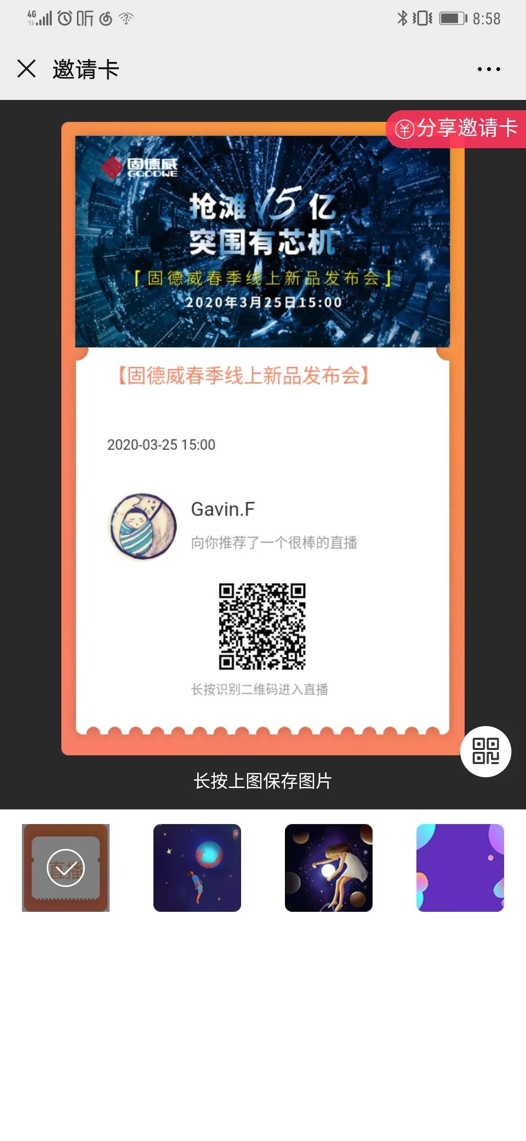 活动当天观看固德威春季线上新品发布会,参与互动话题,互动好礼实力狂撒!