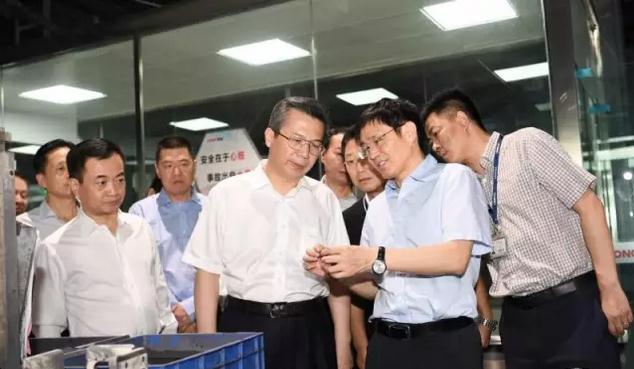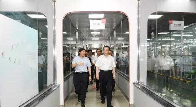 永康书记首先来到隆基股份的西安切片工厂,参观生产线,了解单晶硅片的生产工艺,询问太阳能光伏产业链条布局情况。
