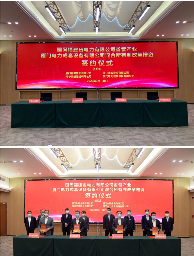 全国疫情防控形势持续向好、生产生活秩序加快恢复之际,3月20日国网福建电力省管产业厦门电力成套设备有限公司混合所有制改革增资签约仪式在厦门举行。这是福建电力首家实施混合所有制改革的产业单位,为坚持两手抓、夺取双胜利再添新动能。科华恒盛(股票代码 002335)与厦门市政集团旗下厦门市政投资有限公司共同入股,强强联手打造能源服务领域新“硬核”。
