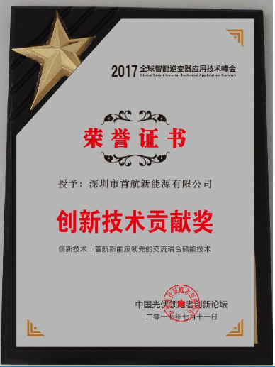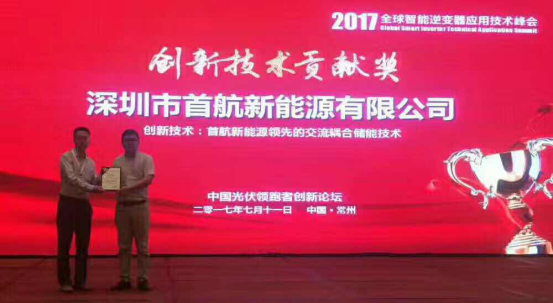由中国光伏测试网联合上海市太阳能学会共同打造的“2017全球智能逆变器应用技术峰会”于7月11日在中华龙城 - 江苏常州盛大开幕。本次会议举行了2017全球智能逆变器创新技术贡献奖的颁奖盛典,首航新能源凭借领先的交流耦合储能技术,荣获创新技术贡献奖。