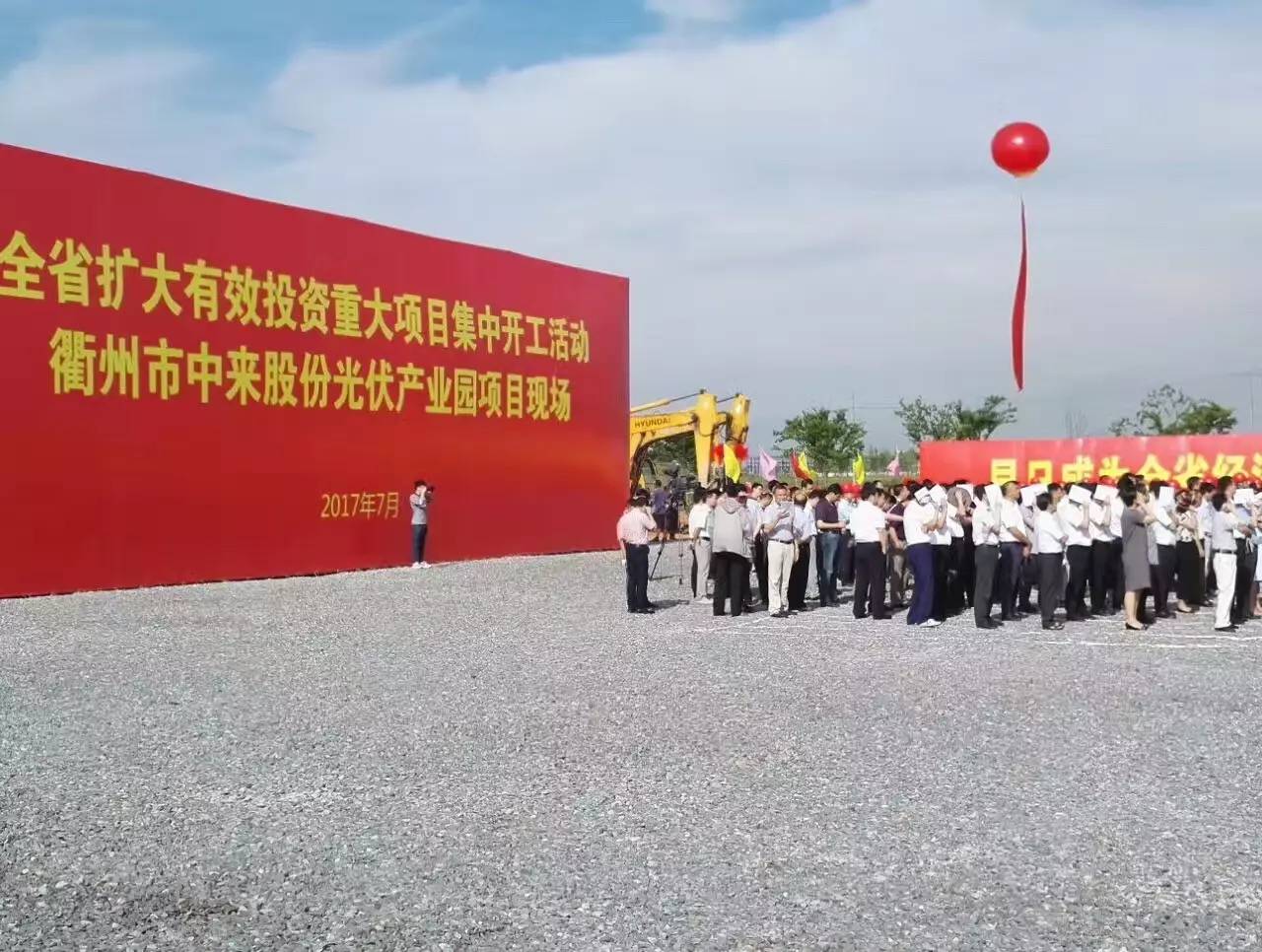 2017年7月10日,浙江省扩大有效投资重大项目集中开工活动在全省11个市同时举行。由苏州中来光伏新材股份有限公司(以下简称“中来股份”)投资的中来衢州光伏产业园项目作为衢州分会场重大项目正式开工建设!该项目建成后将成为全球最大10GW IBC双面太阳能电池项目。