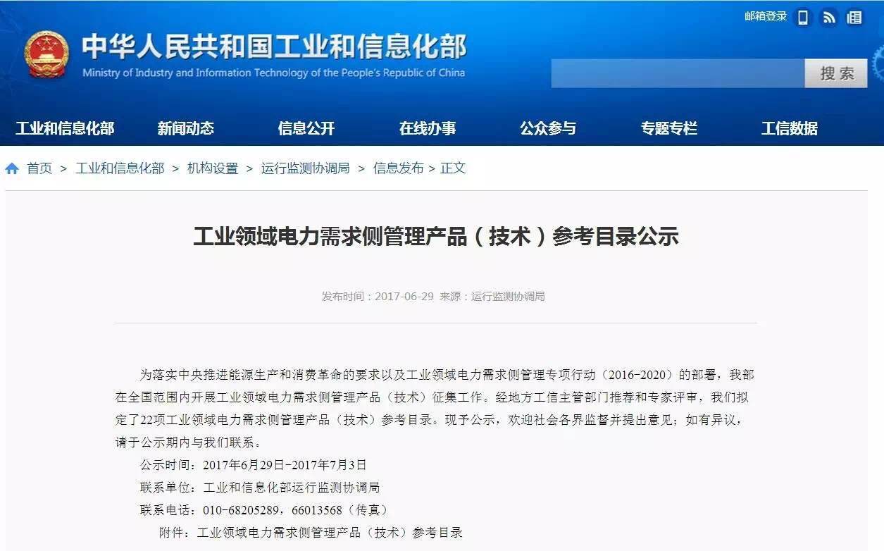 工业领域电力需求侧管理产品(技术)参考目录公示—— 林洋“易能效”榜上有名!