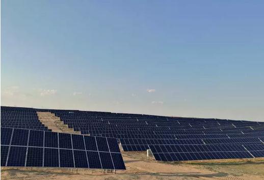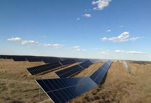在项目现场,俯瞰全景,千亩太阳能光伏板绵延伸展,蓝天白云,广阔无垠,显得尤为壮观,该项目以发展光伏发电收益和草原荒地治理、节水农业相结合,实现了经济效益、社会效益、生态效益、旅游效益的多方共赢,极大的助推了当地的县域经济发展和节能减排目标。