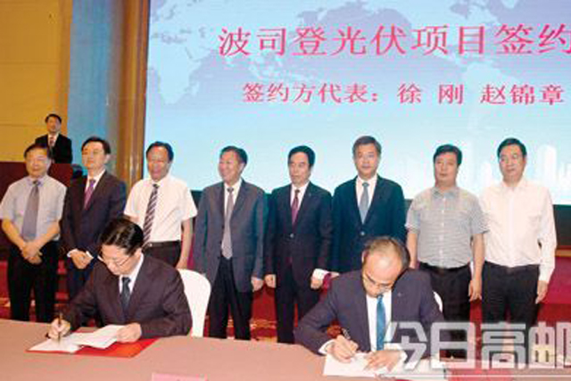 签约仪式上,高德康、潘学元等分别代表各方共同签订了光伏组件项目及康博男装项目投资合作协议。