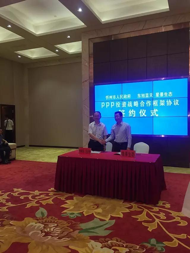 东旭蓝天(000040)子公司星景生态建设投资(苏州)有限公司(以下简称星景生态)与山西省忻州市人民政府签署战略合作协议,就忻州市生态环保、新能源等方面的PPP项目开展合作。项目总投资估算约为人民币50亿元。