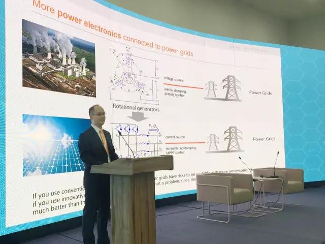 作为大会主要发言嘉宾,顾博士在其题为“Advanced power electronics technologies for future energy networks”的主题演讲中,重点描绘了未来以高渗透率可再生能源为特征的新型能源网络,分析了由此带来的机会和挑战,并介绍了一系列以光伏逆变器为核心的先进电力电子技术,包括基于SiC和多电平的高效高功率密度的逆变技术,对电网起支撑作用的VSG技术和SVG技术,对光伏组件起保护和修复作用的反PID技术。他认为,未来能源互联网是大势所趋,能源互联将以势不可挡的力量与不同行业产生新的融合,应用场景愈发广泛。阳光电源将凭借自身在可再生能源领域的成功经验和先进技术,与传统行业携手,共创美好世界。
