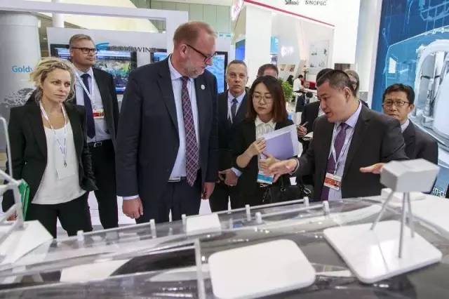 金风科技王海波总裁为丹麦能源、公用事业和气候大臣利勒霍特讲解全新GW6.XMW机组