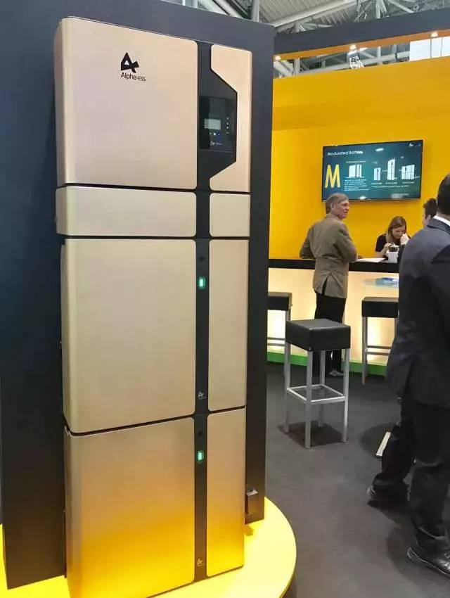 储能馆一号展位是Solarwatt,继去年推出了2.2-8.8kWh户用储能系统Myreserve系列,今年又隆重推出商用储能系统Myreserve Matrix。该款产品一举荣获2017Intersolar 储能奖,可无限扩容,最大放电深度达100%,转换效率99.2%, 组合方便, 10年质保。