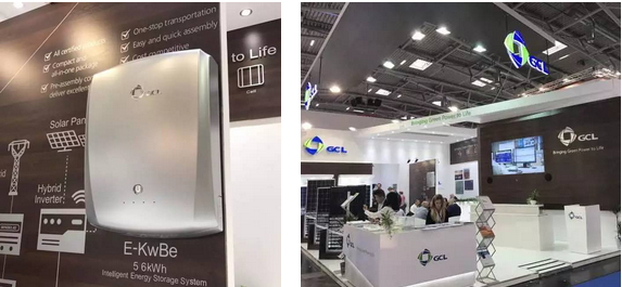 协鑫集成展出了在SNEC推出的户用储系统,电压45-63Vdc,容量为2.5kWh和5.6kWh,电池防护IP54。