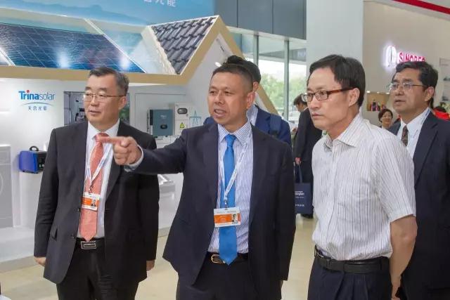 前来参加峰会的各国部长及代表团6日下午到天合光能展台参观,董事长兼首席执行官高纪凡陪同,首席品牌官杨晓忠做现场介绍。