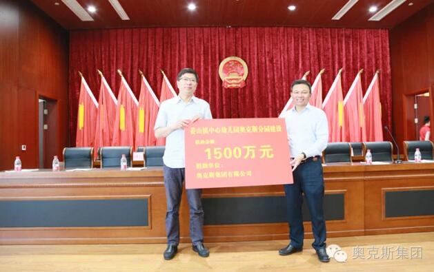 今日下午,奥克斯集团董事长郑坚江代表公司向姜山镇政府捐资1500万元,用于建设姜山镇中心幼儿园奥克斯分园,反哺家乡。