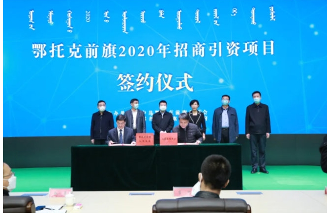 日前,鄂托克前旗举行2020年招商引资项目签约仪式,签约引进5个项目总投资达241亿元。北京京能电力股份有限公司将投资230亿,建设5000MW风、光、氢、储一体化项目,计划2020年开工建设,2021年建成投用。
