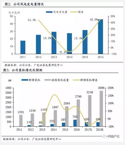 公司2016年全年控股风电发电量为45.85亿千瓦时,同比增长45.05%,增速明显高于去年,主要由于累计装机容量的增加以及利用小时数的提升。公司12月份装机速度加快,2016全年新增控股装机702.55MW(+77.1%),截至当年末累计控股装机达2.8GW, 2017和2018年预计每年可实现500MW的新增容量。此外公司在风电布局上开始由河北省向全国多元化扩展,其2016年新增风电协议容量2600MW,分布于江苏、江西等全国11个省区。我们认为随着公司风电业务的发展,其盈利能力有望得到进一步的提高。