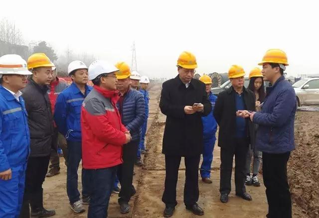 项目经理王广上在施工现场与仙桃市委书记沟通项目情况