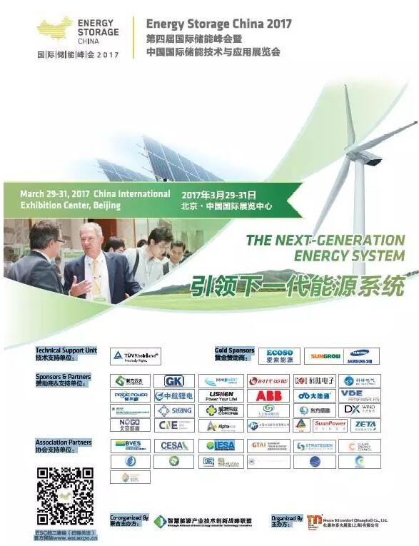 3月29日至31日,ESC2017——国际储能峰会暨中国国际储能技术与应用展览会(Energy Storage China, 简称“ESC”),德国莱茵TÜV集团(下称TÜV莱茵)将作为ESC2017的唯一技术支持机构出席本次盛会。TÜV莱茵大中华区太阳能及燃料电池电子电气服务总经理李卫春,TÜV莱茵大中华区太阳能及燃料电池电子电气服务资深项目经理李强,TÜV莱茵大中华区电子电气产品服务周边设备战略规划经理卢江波、TÜV莱茵商用与工业产品服务南中国区分部经理陈雄,将代表TÜV莱茵与自18个国家和地区的120多位演讲嘉宾一起,分析国内外行业形势,聚焦“光储充一站式”解决方案,把脉2017储能市场发展趋势。