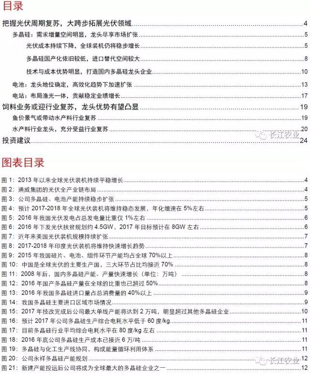 看好公司在光伏领域的发展以及在行业回暖背景下饲料销量的持续提升,预计公司2017,2018年EPS分为0.41和0.56元,对应PE分为16.0和11.7。给予“买入”评级。