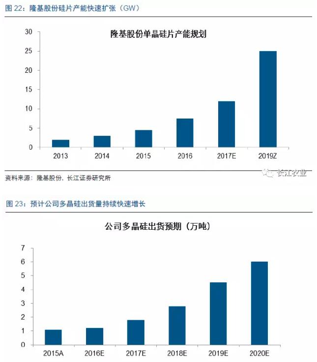 同时,公司本次项目与隆基股份共同投资建设,隆基股份为全球单晶硅片龙头企业,目前具备单晶硅片产能7.5GW,预计今年底产能将达到12GW,2019年中规模达到25GW。按照当前硅耗水平,隆基股份25GW硅片产能对应硅料需求超过10万吨。公司通过与隆基股份合作,将有利于公司后期产能释放,为公司多晶硅规模扩张增添确定性,预计2017-2019年公司多晶硅出货量将维持快速增长趋势。