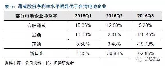 从盈利水平来看,2016年上半年公司电池业务毛利率超过20%,净利率超过10%。虽然此后3季度价格大幅下跌对盈利造成一定影响,但公司净利率水平仍在5%左右水平,明显优于其他电池企业。