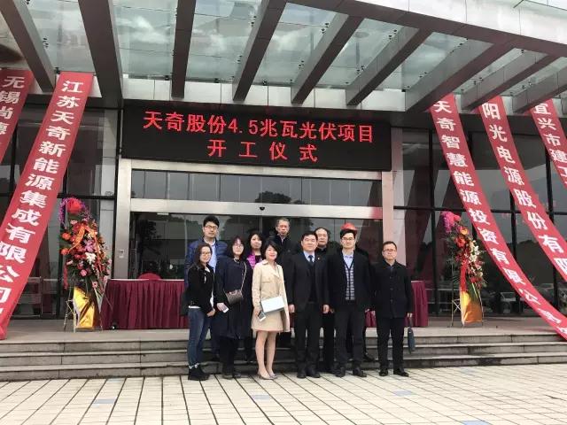 3月24日上午,无锡天奇股份举行4.5兆瓦工厂屋顶分布式光伏发电项目开工仪式,天奇自动化工程有限公司总裁徐湘华宣布项目启动,无锡新能源商会与Solarbe、北极星、PVP365、世纪新能源网、欧乐光伏网、光伏测试网等媒体单位现场道贺。