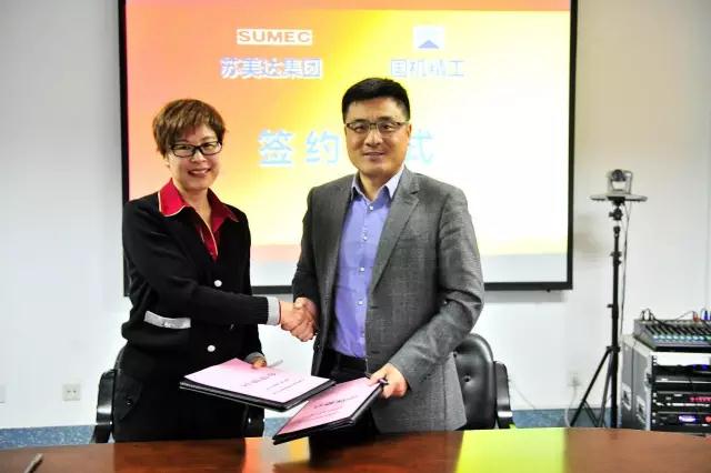 国机精工白鸽公司党委书记副总经理冯丽晖和苏美达能源副总经理芮春保签约