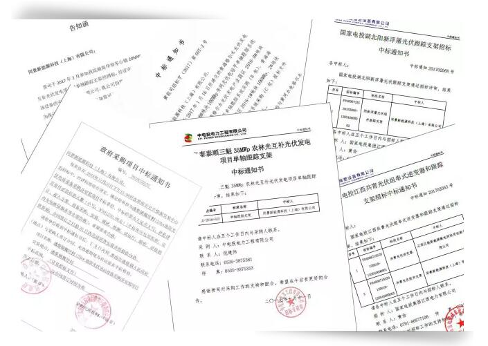 雄厚的技术实力、良好的信誉、过硬的资质、丰富的项目管理经验也让同景赢得越来越多客户的信赖和认可。2017年初便捷报频传,截至目前已成功中标八个项目,合计247MWp。