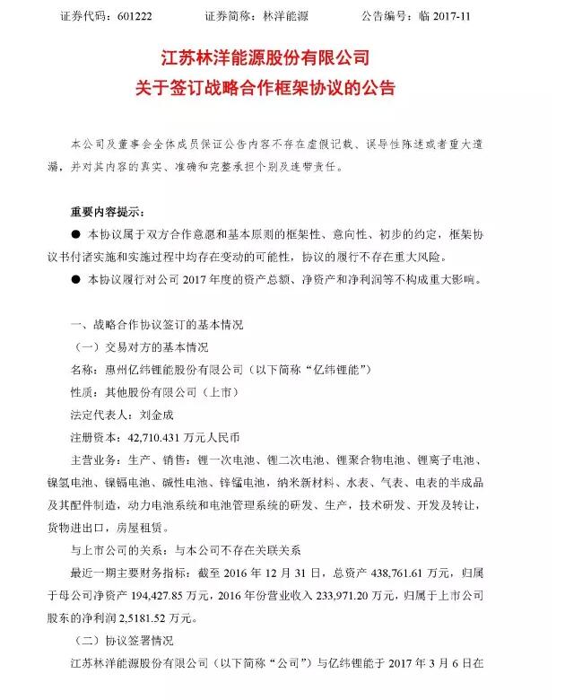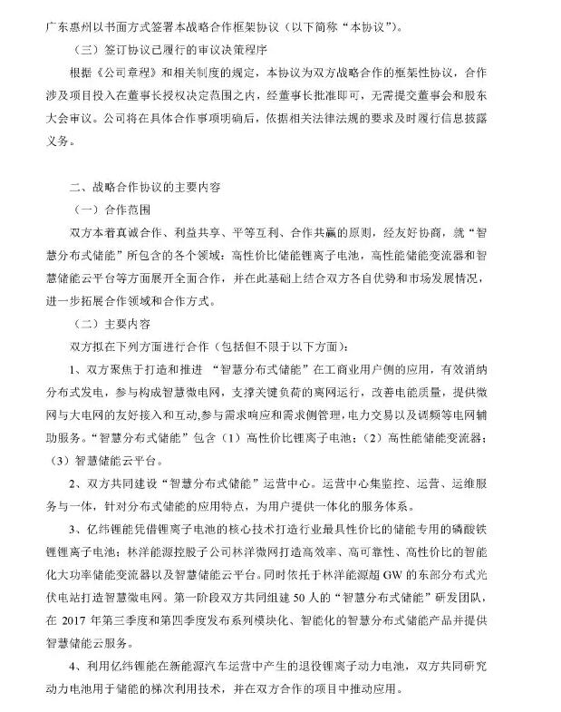 江苏林洋能源股份有限公司 关于签订战略合作框架协议的公告